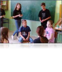 Sa učenicima 3. i 4. razreda na radionici "u krugu" , edukatori su diskutovali na nekoliko, njima interesnatnih tema: da li treba pričati o problemu, da li se treba umešati u konflikt i sprečiti nasilje?