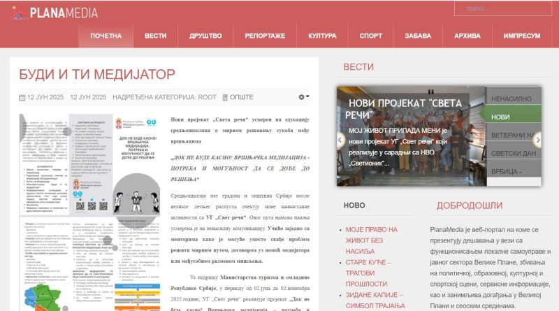 U saradnji s Ministarstvom turizma i omladine Republike Srbije, udruženje „Svet reči“ pokrenulo je novi projekat „Dok ne bude kasno! Vršnjačka medijacija – potreba i mogućnost da se dođe do rešenja“.